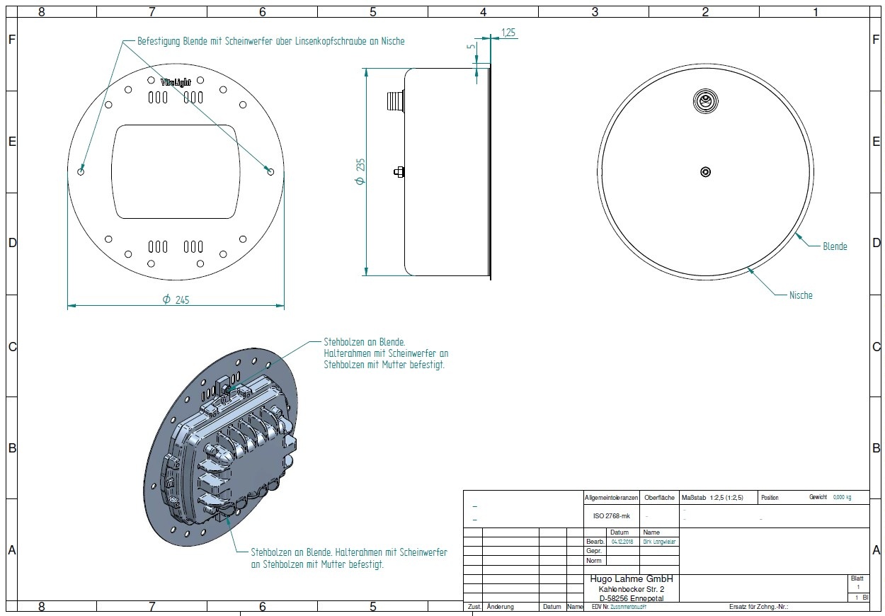 VitaLight® LED 28/4 24V DC série 4.44462. Projecteur sub-aquatique 100% inox, corps et enjoliveur, totalement résistant à la corrosion, avec platine de processeur-contrôle, et verre de sécurité.